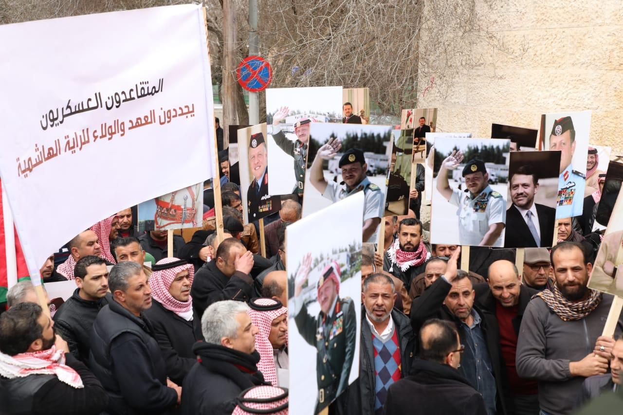 نفذ حشد كبير من متقاعدي مديرية الأمن العام (الأمن العام، الدفاع المدني وقوات الدرك) صباح هذا اليوم امام حدائق الحسين في عمان وقفة حاشدة تعبيراً عن شكرهم لمكرمة جلالة القائد الاعلى الملك عبد الله الثاني المعظم بدعم صندوق الاسكان العسكري لضباط الامن العام وانشاء ادارة تهتم بشؤونهم .