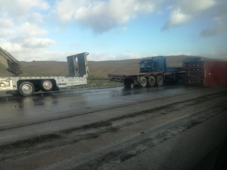 اغلاق طريق المفرق الزرقاء بعد تدهور تريلا - صور