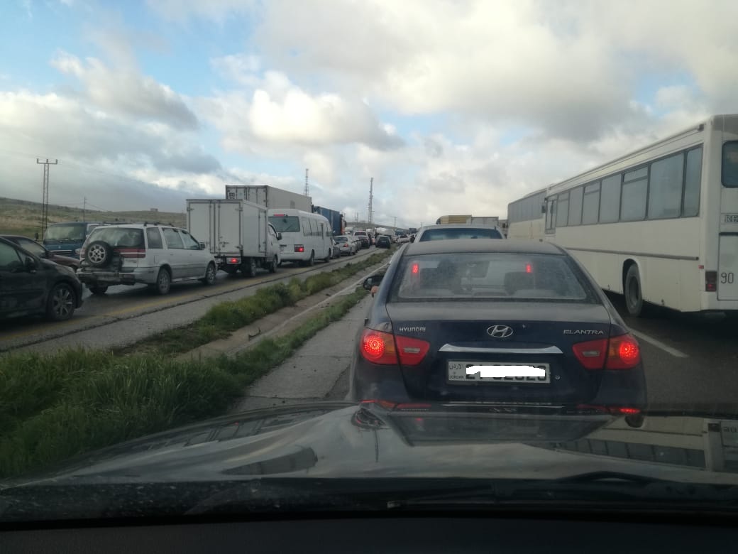 وغلق الحادث الطرق بالاتجاهين، فيما لم يتنج عن الحادث اي اصابات او خسائر بالارواح.