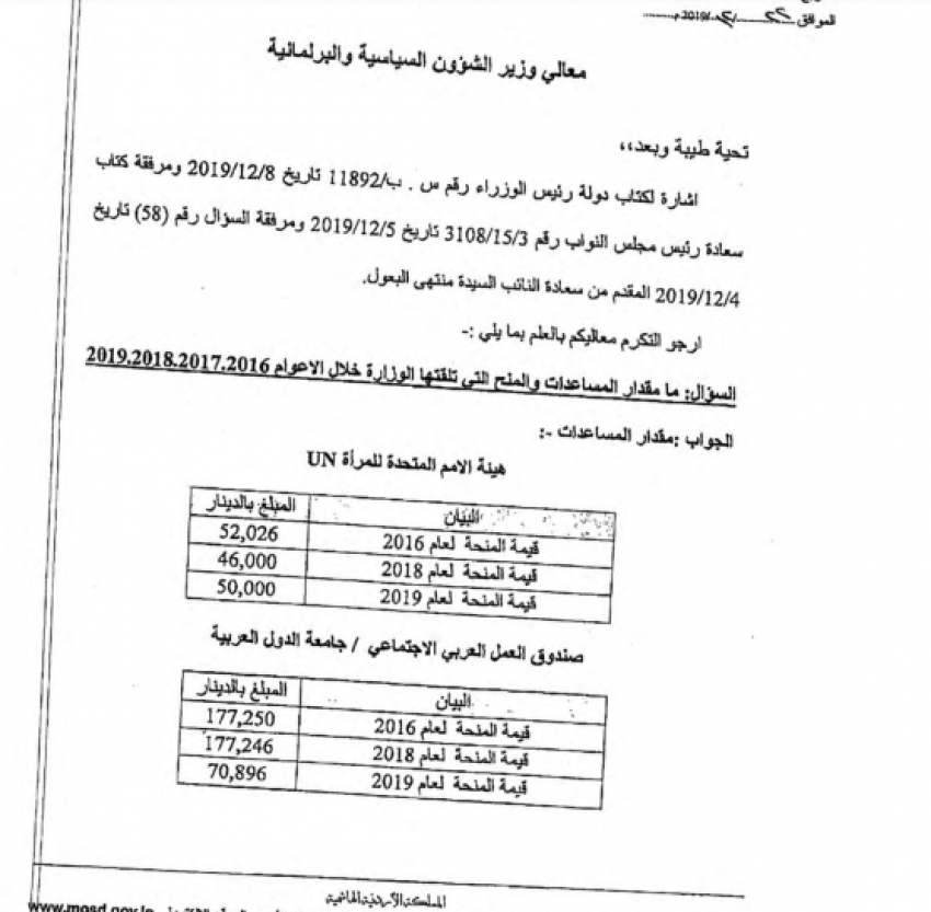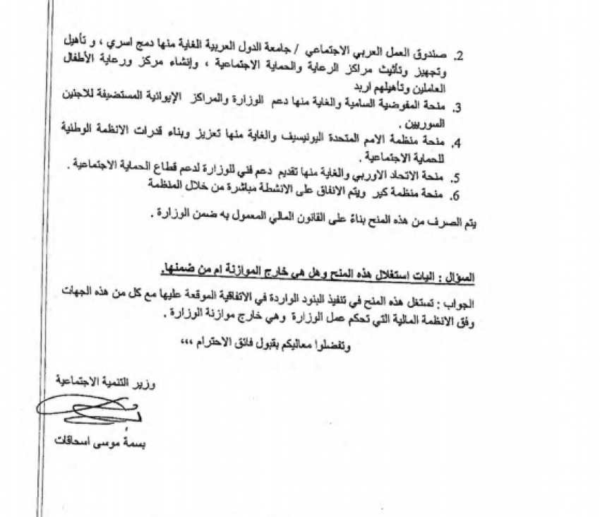 وقالت إسحاقات خلال جلسة صباحية إنّ هذه المنح والمساعدات صرفت وفقا للأسس التي اتفق عليها مع الجهات المانحة هيئة الامم المتحدة منها دعم تمكين المرأة، صندوق العمل العربي الاجتماعي للدمج الأسري.