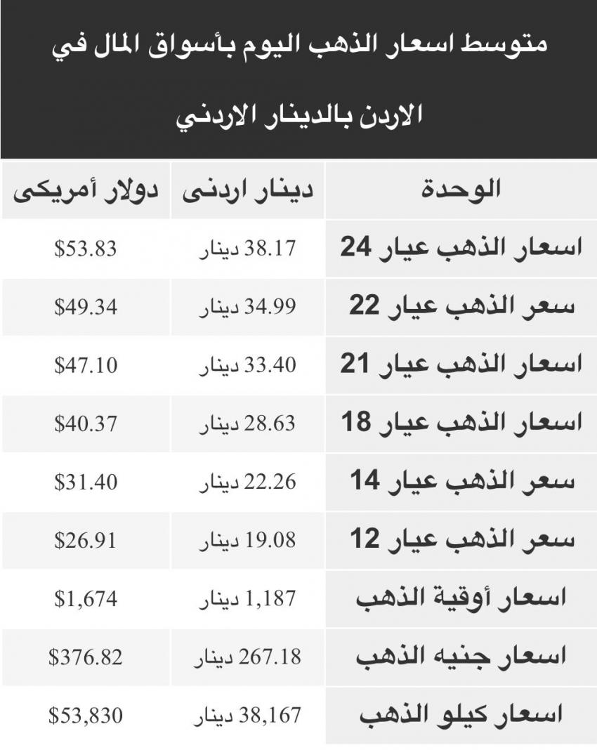 أحداث اليوم - التقرير الدوري والمتجدد لاسعار الذهب اليوم في الأردن بالدينار الأردني وأيضا الدولار الأمريكي.
