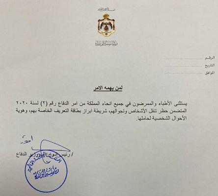 استنثى رئيس الوزراء عمر الرزاز صباح السبت الأطباء والممرضين في كافة مناطق المملكة من قرار حظر التجوال الممثل لأمر الدفاع رقم 2.