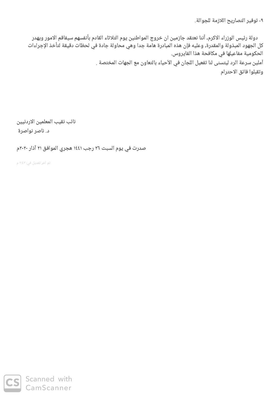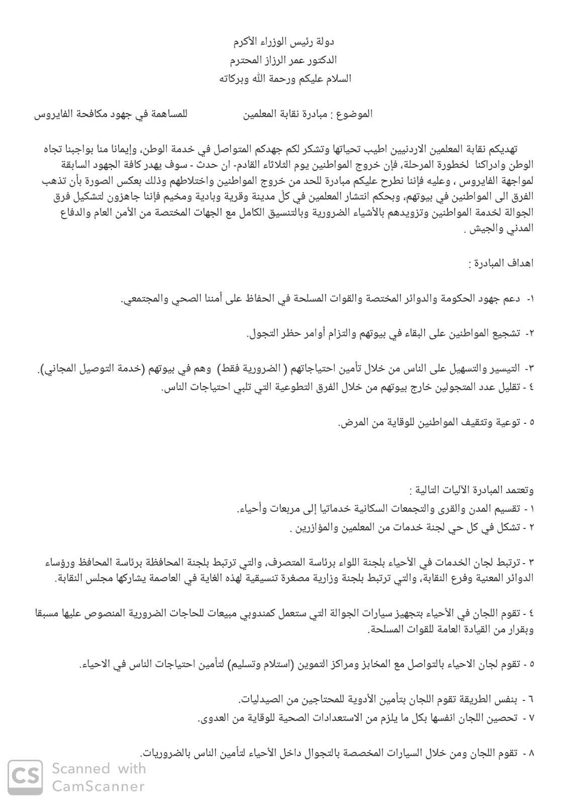 أحداث اليوم - أطلقت نقابة المعلمين الأردنيين مبادرة جديدة لمساندة ودعم المجهود الرسمي والوطني في مكافحة فيروس كورونا،.