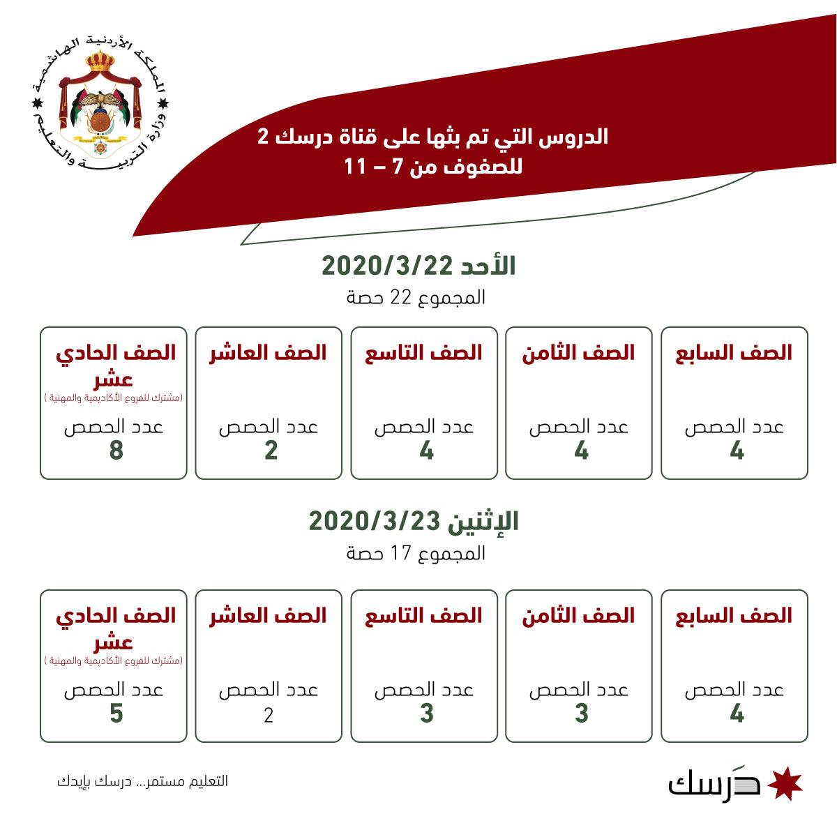 أحداث اليوم - وصل عدد المستخدمين لمنصة "درسك " التعلم عن بعد لنحو مليون مستخدم بمعدل مشاهدات وصل الى 323.375 الف يومياَ فيما بلغ عدد المشاهدات 8.200.140 مليون مشاهدة بعدل دخول 2.730.380 مشاهدة يوميا.