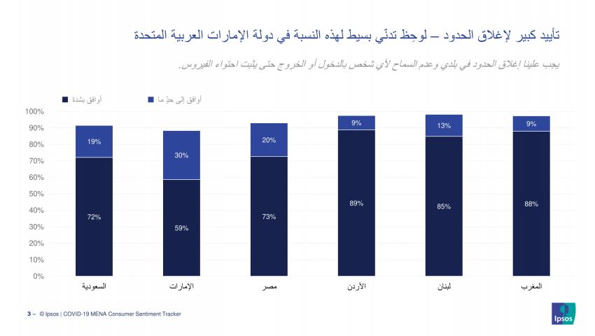 كما تصدر الأردن شعوب الدول العربية في تأييدهم لاجراءات اغلاق الحدود وعدم السماح لأي شخص بالدخول أو الخروج حتى يثبت احتواء الفيروس.