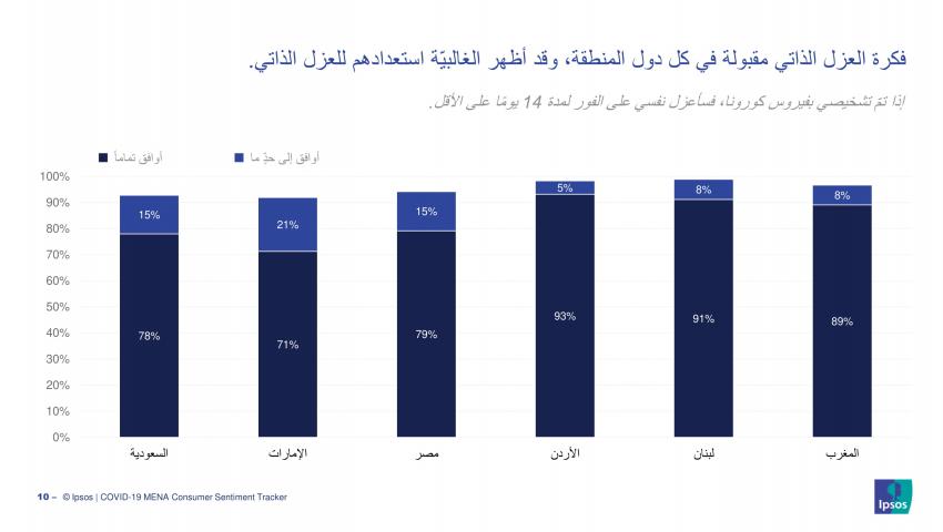 وتصدر الأردن شعوب الدول العربية في استعدادهم للعزل الذاتي حال تشخيصهم بالفيروس.