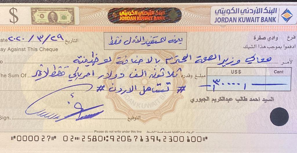 كما أود الإفصاح عن مساهمتي للوقوف مع اخوتي هنا بوجه هذه المحنة، (بمبلغ قدره ثلاثون الف دولار أمريكي تعبيراً عن صدق المشاعر، عسى أن يساعد ذلك بتخفيف وطأة الجائحة على اخوتنا من أبناء المملكة، ويمكنهم من تجاوزها بيمنٍ وبركة.