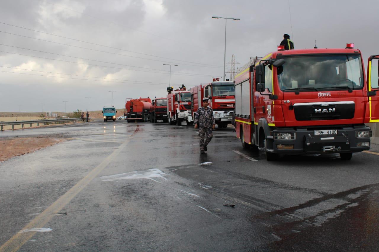 توفي سائق صهريج مخصص لحمل مادة الفيول النفطية، بعد تدهور الشاحنة واحتراقها، عصر الاربعاء على طريق الـ 100 قرب جسر الكلية العسكرية، في محافظة الزرقاء.