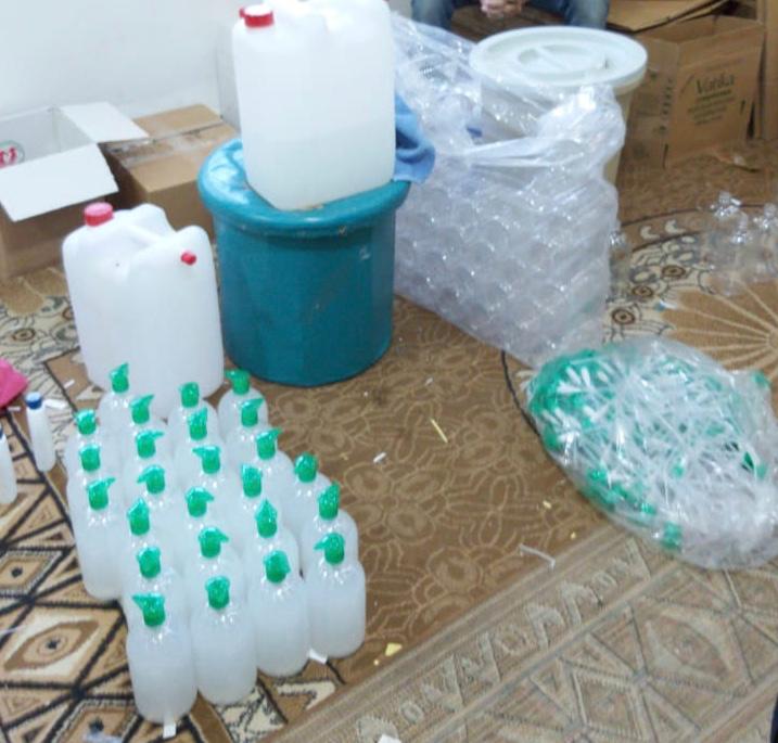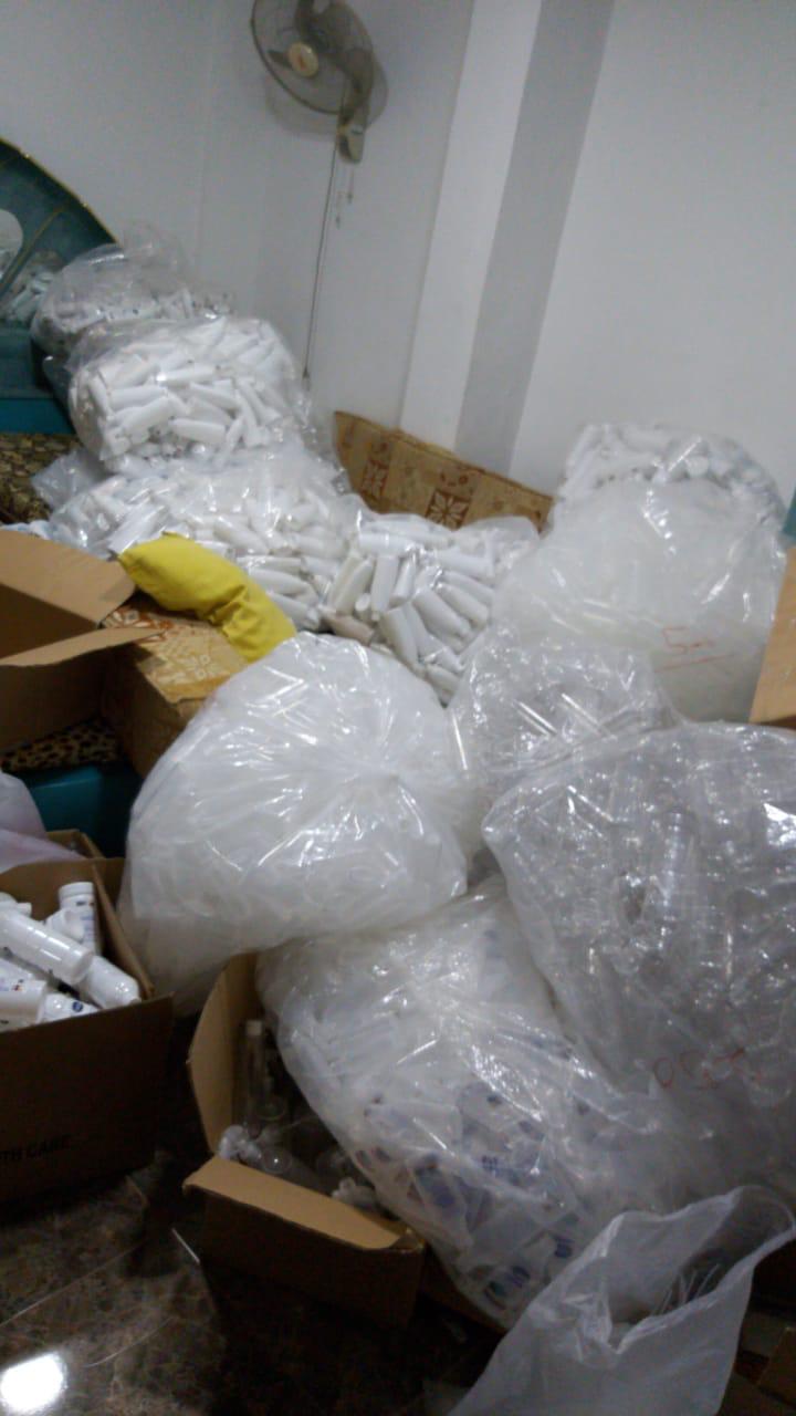فيما ضبط شخص داخل معمل غير مرخص في لواء الرصيفة يقوم بتصنيع المواد المعقمة المقلدة وضبط كمية من تلك المواد داخل المعمل .