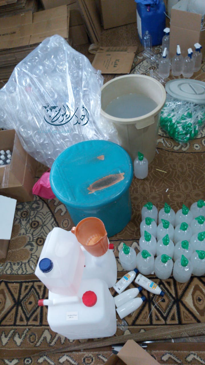 ضبط معمل في المقابلين يصنع مواد تعقيم مقلّدة - صور