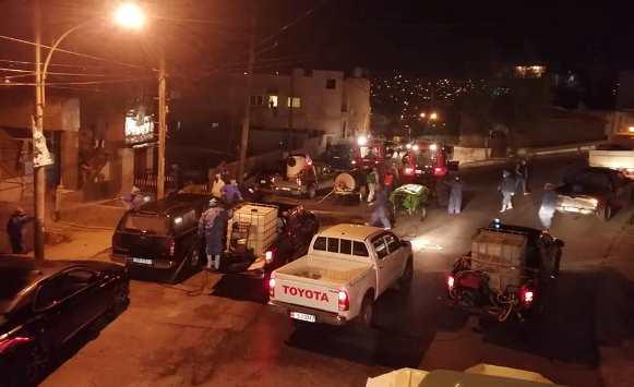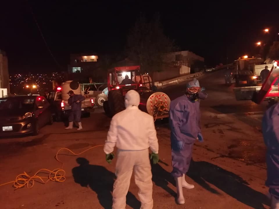 باشرت فرق التعقيم التابعة لبلدية السلط، مساء الاثنين، تعقيم منطقة السلالم في المدينة، بعد تسجيل وفاة سادسة بفيروس كورونا لأحد قاطني المنطقة.