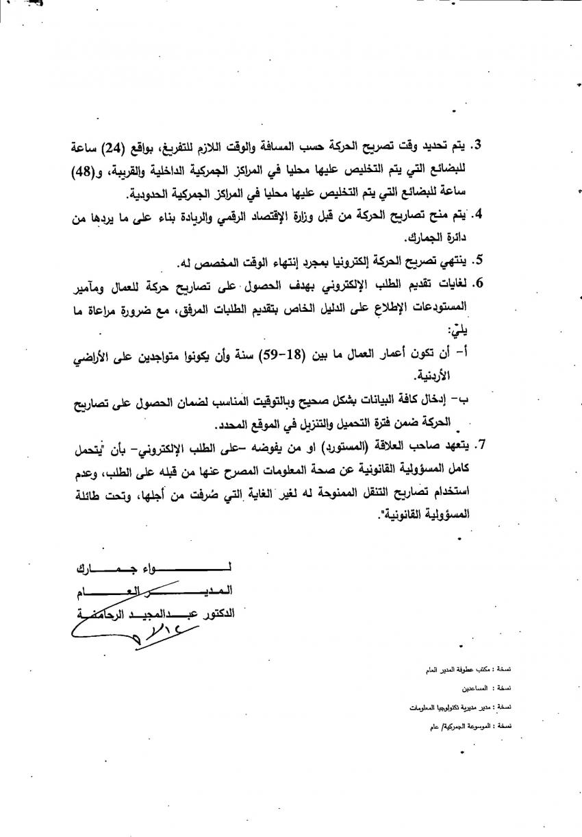 وأشارت إلى أن منح التصاريح يتم من قبل وزارة الاقتصاد الرقمي والريادة بناء على ما يردها من دائرة الجمارك، لافتتا إلى أن التصريح ينتهي مع انتهاء الوقت المخصص له.
