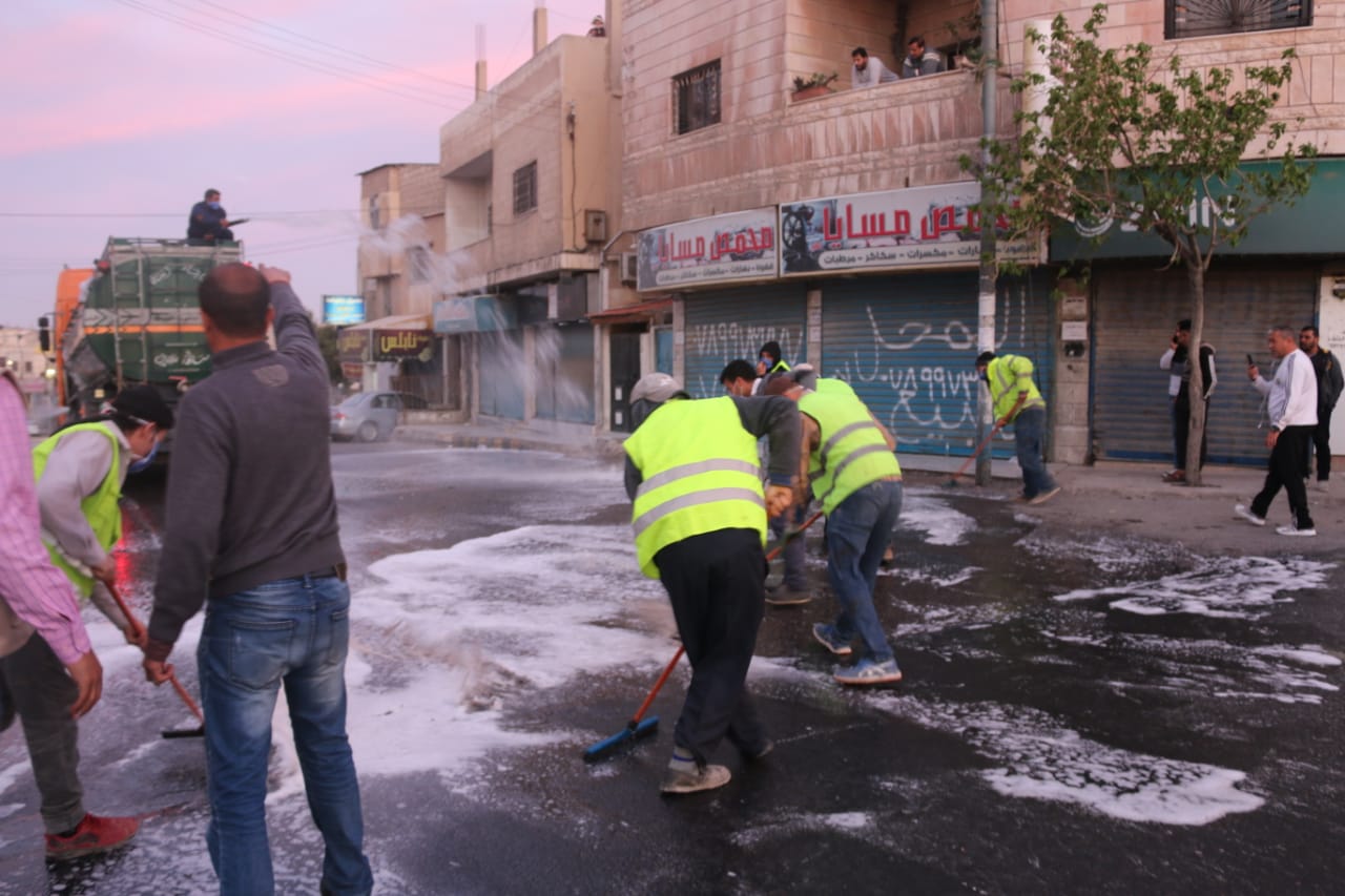 وقال الناطق الاعلامي في بلدية الزرقاء ينال المعاني إن كوادر البلدية باشرت بغسيل الشوارع بالمياه ومواد التنظيف والمعقمات.