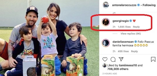 ووضعت جورجينا قلب حب أحمر كرمز تعبيري على الصورة التي نشرتها أنتونيلا عبر حسابها الشخصي في "إنستغرام".