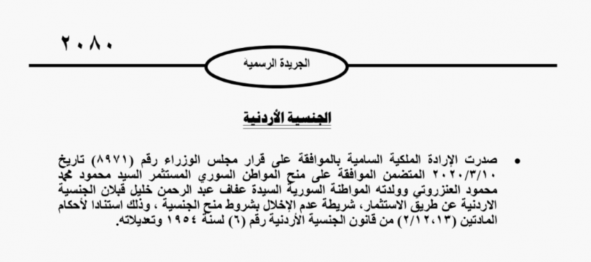 الجنسية الأردنية لمستثمر سوري ووالدته