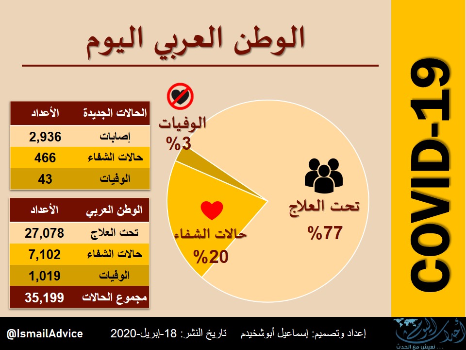 أحداث اليوم - اسماعيل ابو شخيدم - وصل الوطن العربي إلى 7 ألاف حالة شفاء من #فيروس_كورونا، بعدما سُجلت 466 حالة شفاء جديدة.