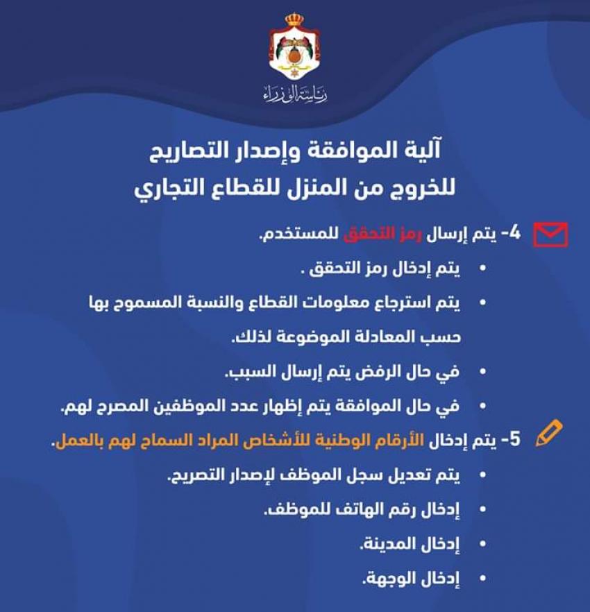 أحداث اليوم - أعلنت الحكومة عن آلية اصدار الموافقة واصدار التصاريح للخروج من المنزل للقطاع التجاري.