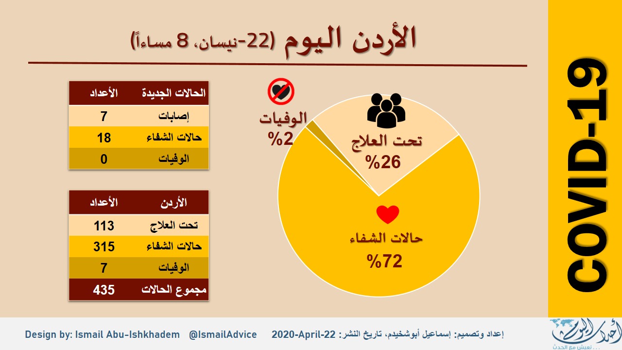 %72 نسبة الشفاء من كورونا في الأردن - أنفوجراف