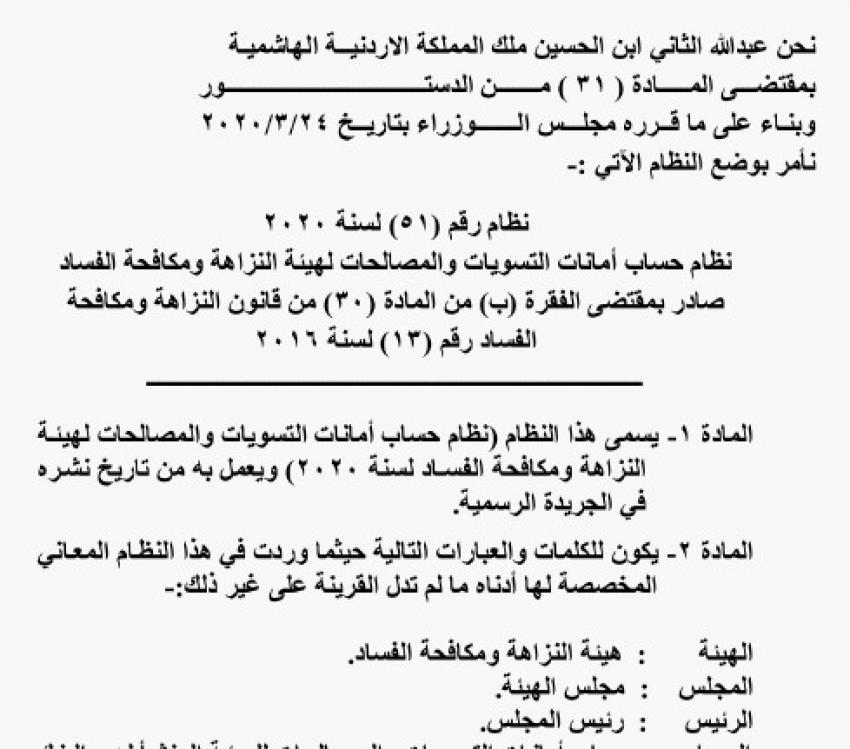 وفي ما يلي نص النظام المصادق عليه من الملك عبد الله الثاني