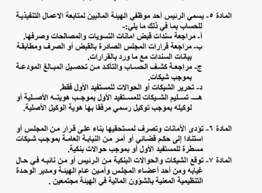 وينشأ الحساب لدى البنك لحفظ وإدارة الأموال والمنافع المتحصلة عن أفعال الفساد التي يتم استردادها أو الحجز عليها وإلى حين تسليمها لمستحقيها.
