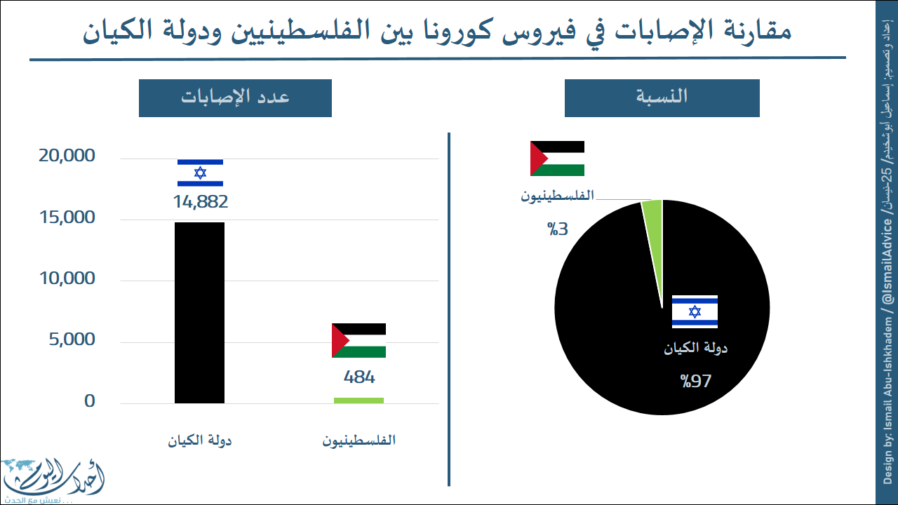 فماذا لو شارك الفلسطينيين نسب الإصابات في فيروس كورونا مع الكيان؟ وما هي الفروق في الأرقام؟