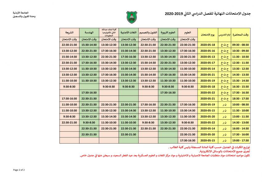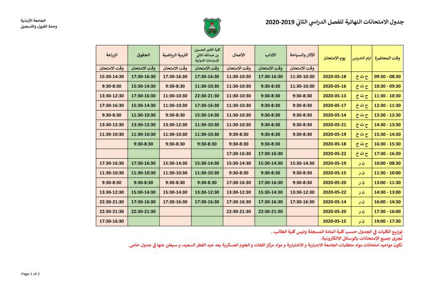 أحداث اليوم - أعلن المسجل العام في الجامعة الأردنية الدكتور أشرف العدوان مواعيد الامتحانات النهائية الالكترونية للفصل الدراسي الثاني 2020/2019.
