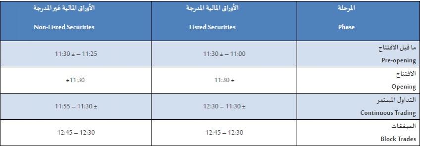 كما تكون أوقات جلسات التداول على النحو التالي:
