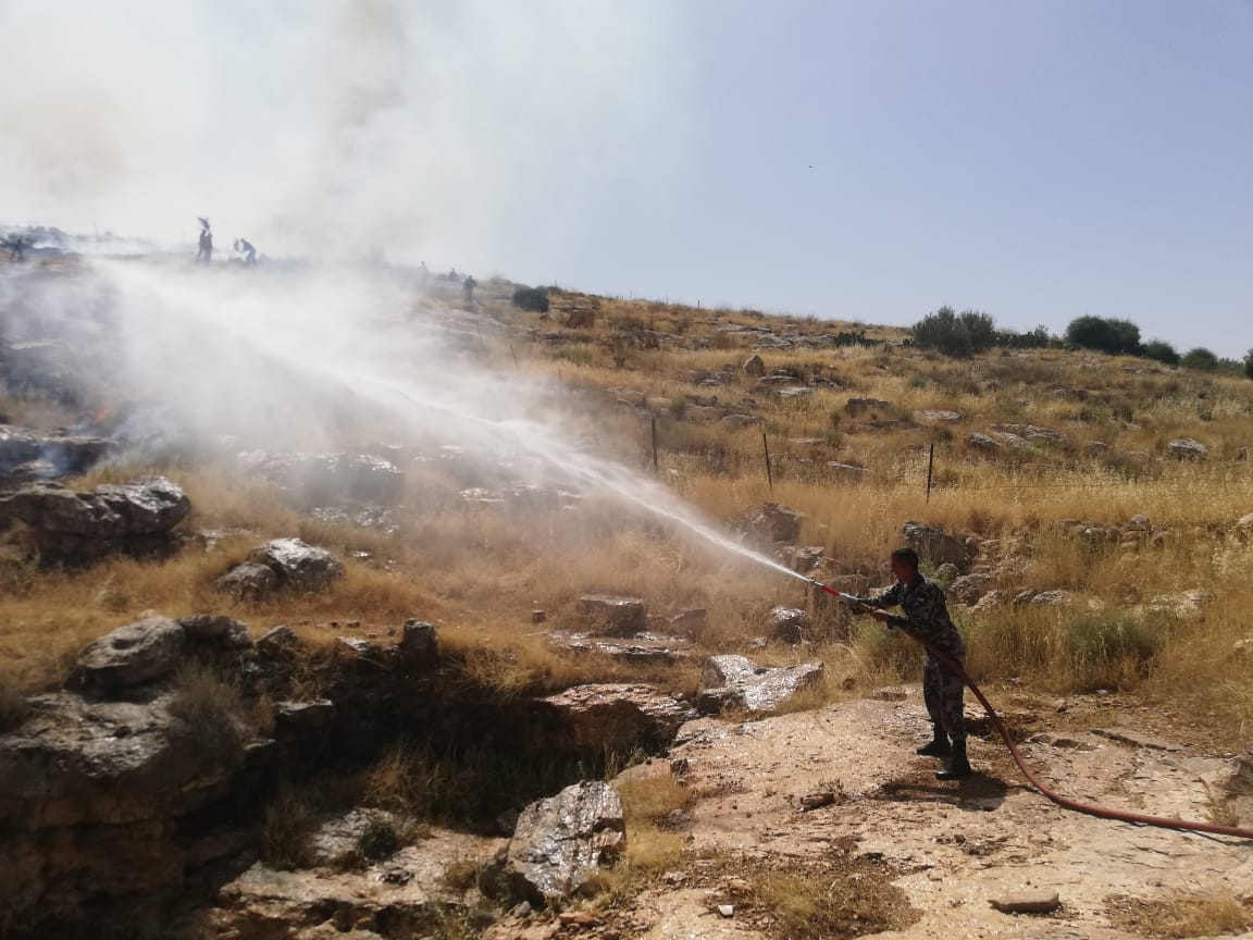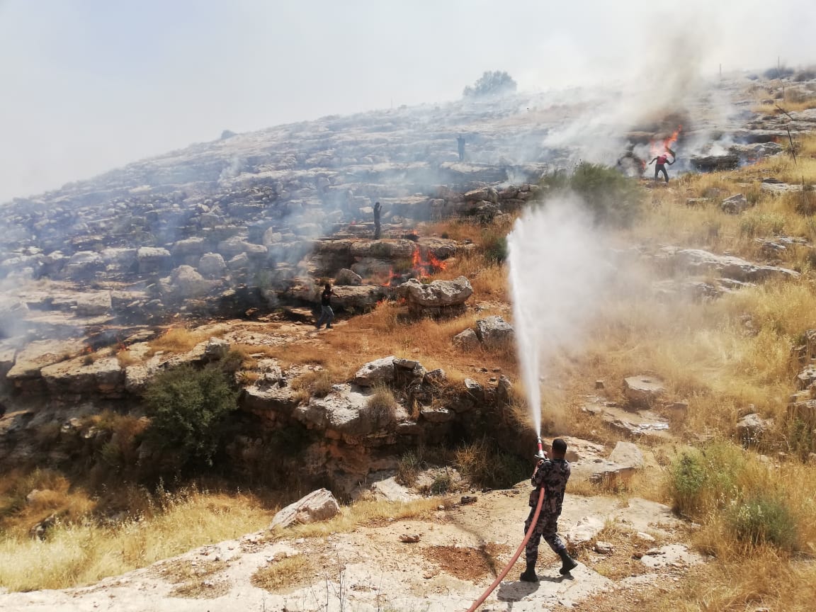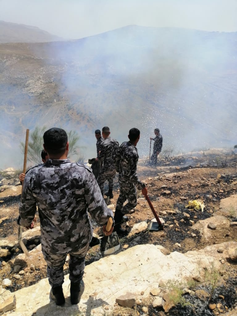 أحداث اليوم - تواصل مديرية الأمن العام اخماد الحرائق في محافظات مختلفة من المملكة.وفي الصور كوادر الإنقاذ والإطفاء الدفاع المدني يساندهم أفراد من الدرك يتعاملون مع حرائق لحشائش جافة وأشجار في منطقة جبل بني حميدة.