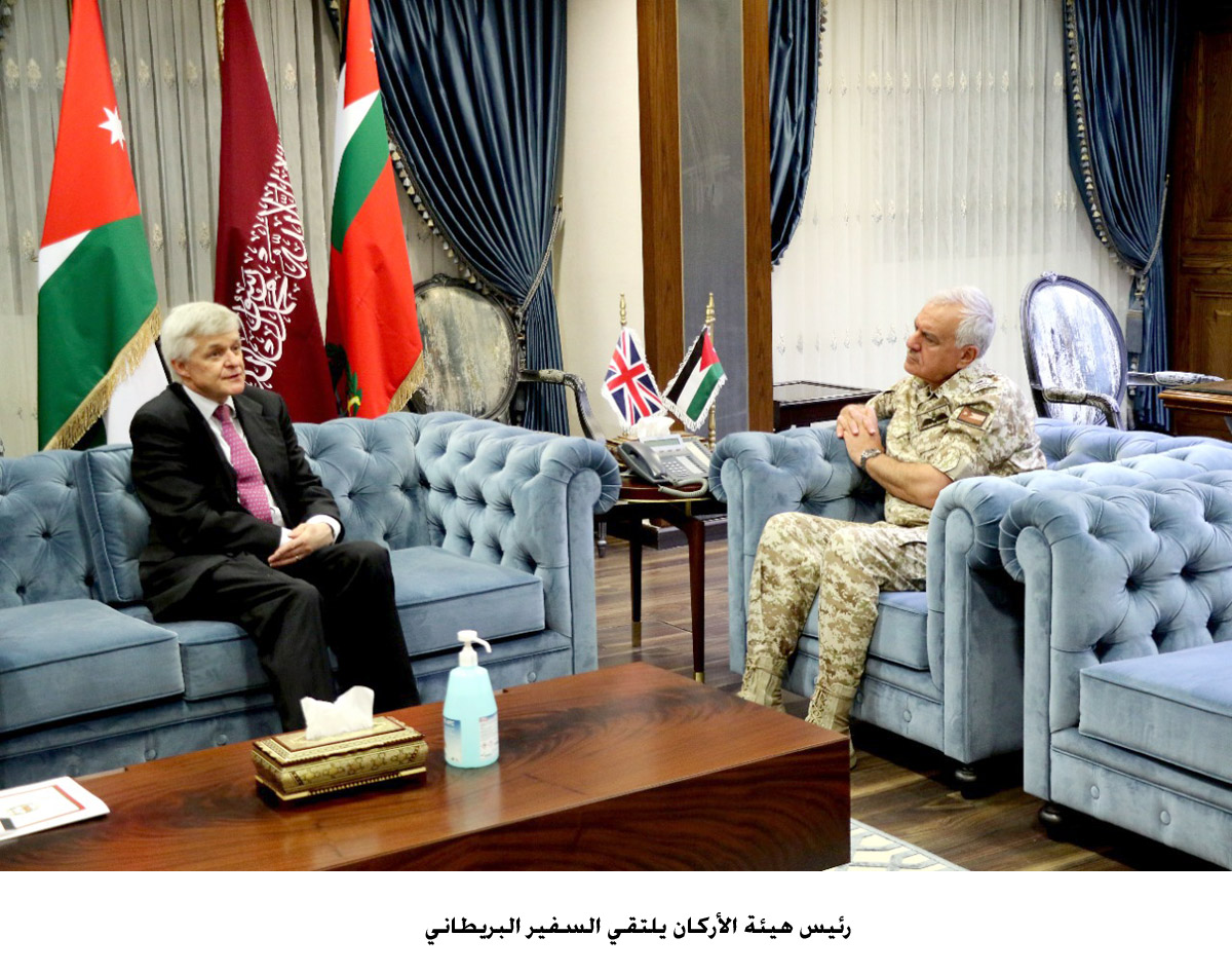 أحداث اليوم - التقى رئيس هيئة الأركان المشتركة اللواء الركن يوسف الحنيطي، في مكتبه بالقيادة العامة، اليوم الأربعاء، السفير البريطاني إدوارد أوكدن.