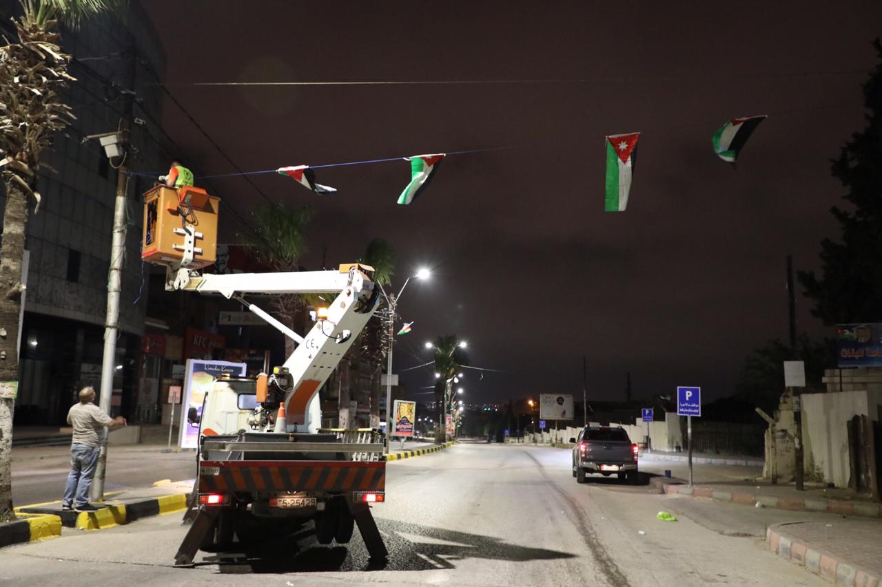 وقال التل ان البلدية تعمل بتعاون كامل مع مختلف المؤسسات الرسمية وعدداً من مؤسسات المجتمع المدني وقامت كوادر وحدة العلاقات فيها بتجهيز كميات كبيرة من الأعلام وتوزيعها على مختلف الأبنية في المدينة بالإضافة إلى تجهيز عدد كبير من احبال الزينة ليتم تعليقها في مواقع مختلفة من المدينة احتفاءً بعيد الإستقلال.