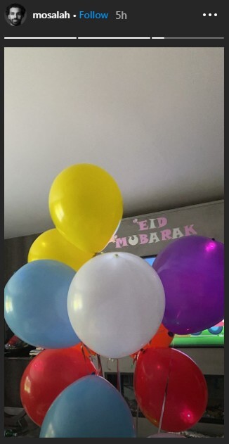 صلاح يحتفل بعيد الفطر في منزله "بالبالونات" - صور