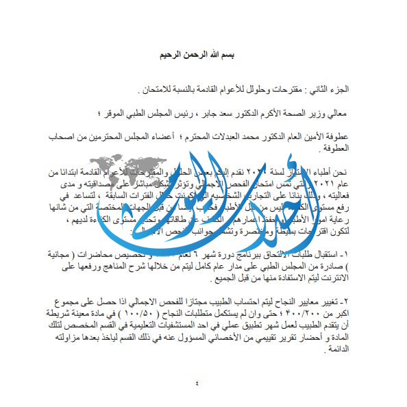 وبين انه في حال تعذر اقرار الاستثناء فانهم يطلبون اجراء الامتحان الكترونيا نظرا لعدم توفر الظروف الصحية التي اقرتها منظمة الصحة العالمية لعقد الامتحانات ومنها عدم تجمع عدد كبير من الطلبة داخل قاعات الامتحان .