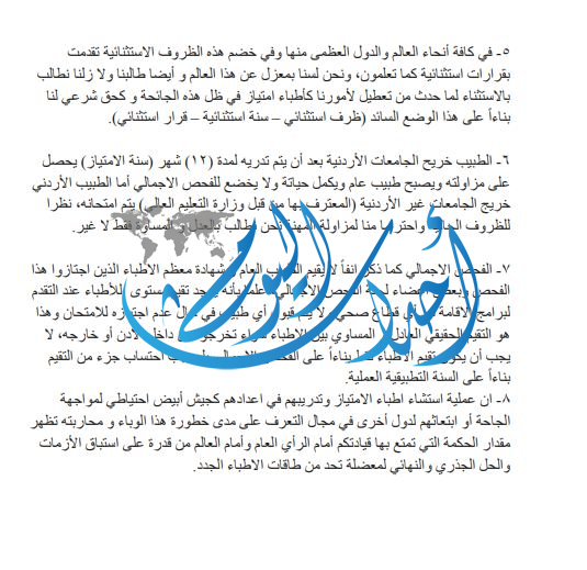 وروفع الطلاب عريضة وقع عليها اكثر من 300 طالب طالبت باقرار الاستثناء من خلال قرار من المجلس الطبي او من خلال بلاغ صادر عن رئيس الوزراء.