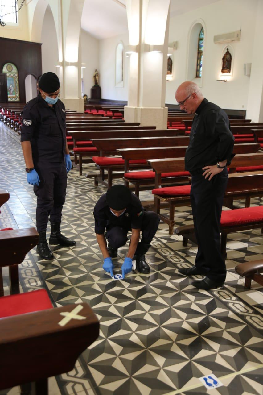 حيث حرصت المبادرة على ضمان التباعد الاجتماعي وترك مسافة أمان كافية بين المصلين في المساجد والكنائس ووضع بوسترات توعوية على المداخل توضح خطورة التزاحم وأهمية ارتداء أدوات السلامة العامة اثناء القدوم والصلاة داخل المساجد والكنائس ، وتُهيب مديرية الأمن العام بالاخوة المصلين الالتزام بكافة التعليمات الصادرة حول متطلبات السلامة العامة .