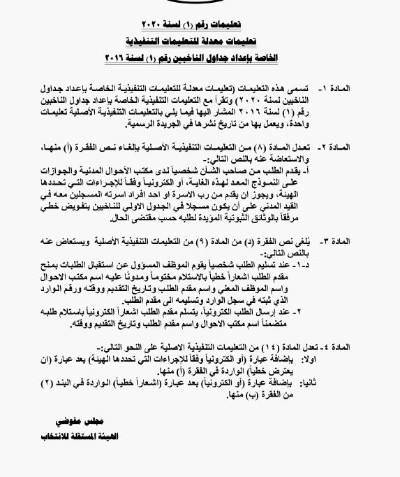 أحداث اليوم - صدر عدد في الجريدة الرسمية اليوم الثلاثاء تعليمات معدلة للتعليمات التنفيذية الخاصة بإعداد جداول الناخبين رقم (1) لسنة 2016