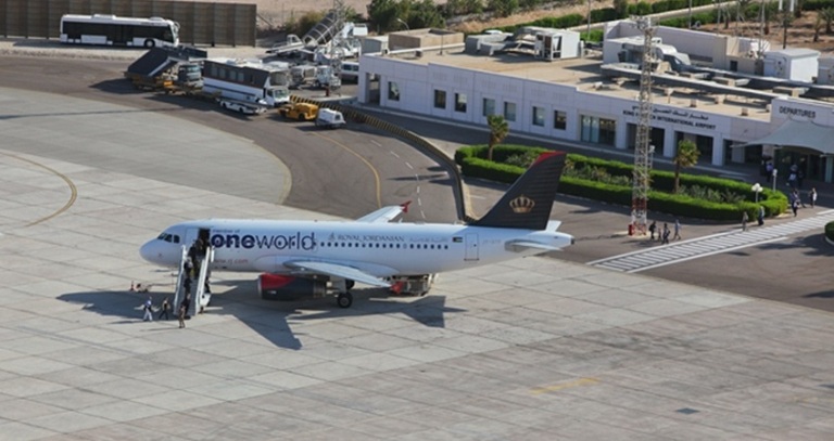 وصلت أول رحلة طيران محلية إلى مطار الملك حسين الدولي في محافظة العقبة صباح الخميس، على متنها 141 راكبا، بعد إغلاقه منذ منتصف آذار الماضي