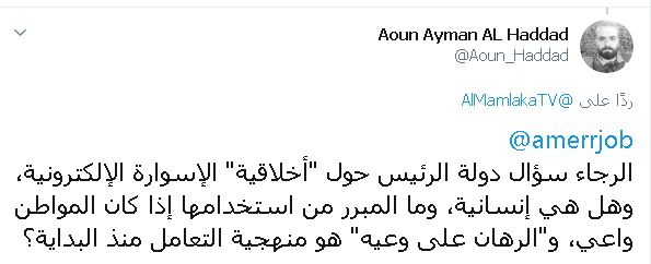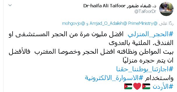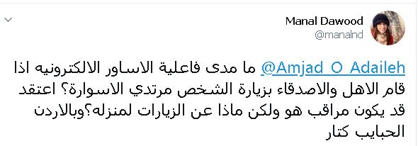 أحداث اليوم - تفاعل نشاطاء أردنيون على قرار الحكومة الأخير الخاص بتجرية الإسوارة الإلكترونية على الخارجين من الحجر المؤسسي للحجر المنزلي، وذلك لمراقبتهم ومتابعتهم والزامهم باتباع تعليمات التباعد وعدم المخالطة.