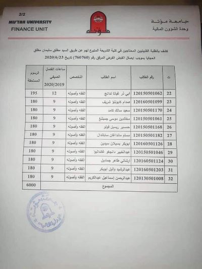 أحداث اليوم - وكفل المواطن الأردني، مطلق الحجايا، برسوم 32 طالبا فلبينيا، يدرسون في جامعة مؤتة.وتصل قيمة رسوم الطلاب، التي تكفل بها الحجايا، إلى 6 آلاف دينار أردني.