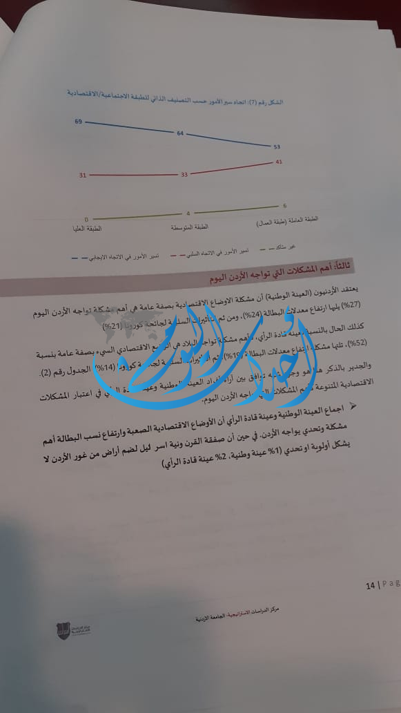 - غالبية الأردنيين يعتقدون أن الاقتصاد الأردني يسير في الاتجاه الخاطئ /السلبي.