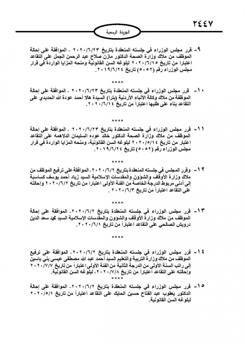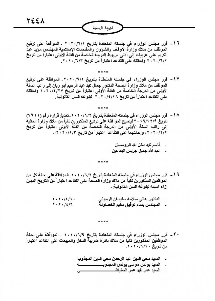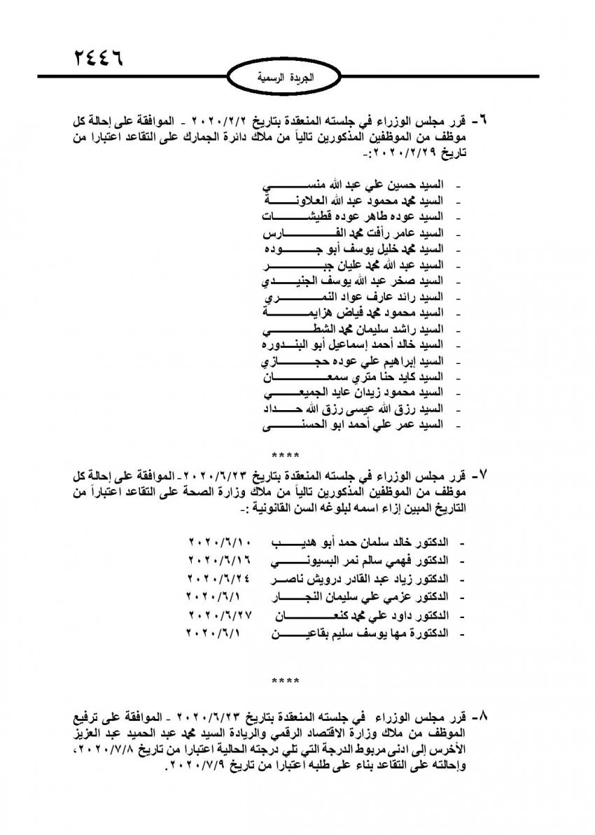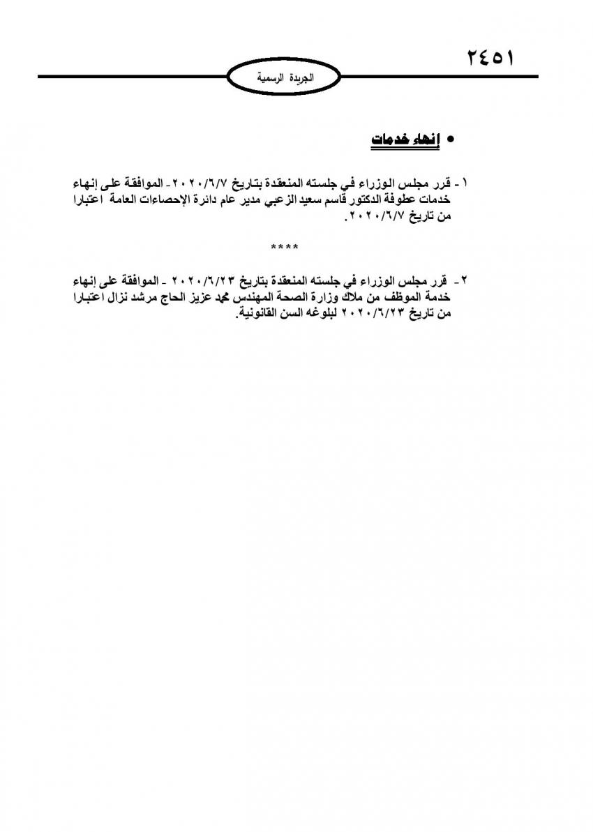 أحداث اليوم - صدر عدد في الجريدة الرسمية اليوم الأربعاء قرارات مجلس الوزراء باحالة عدد من موظفي الدولة الى التقاعد، وإنهاء خدمات آخرين.وتاليا الأسماء: