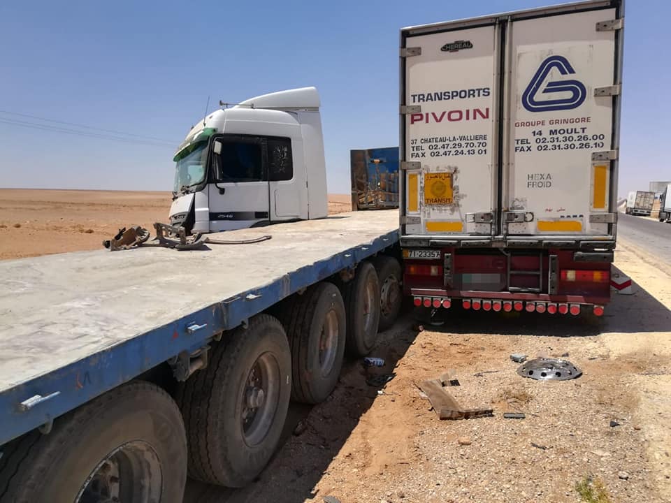 إصاباتان بتصادم بين تريلات في الرويشد - صور