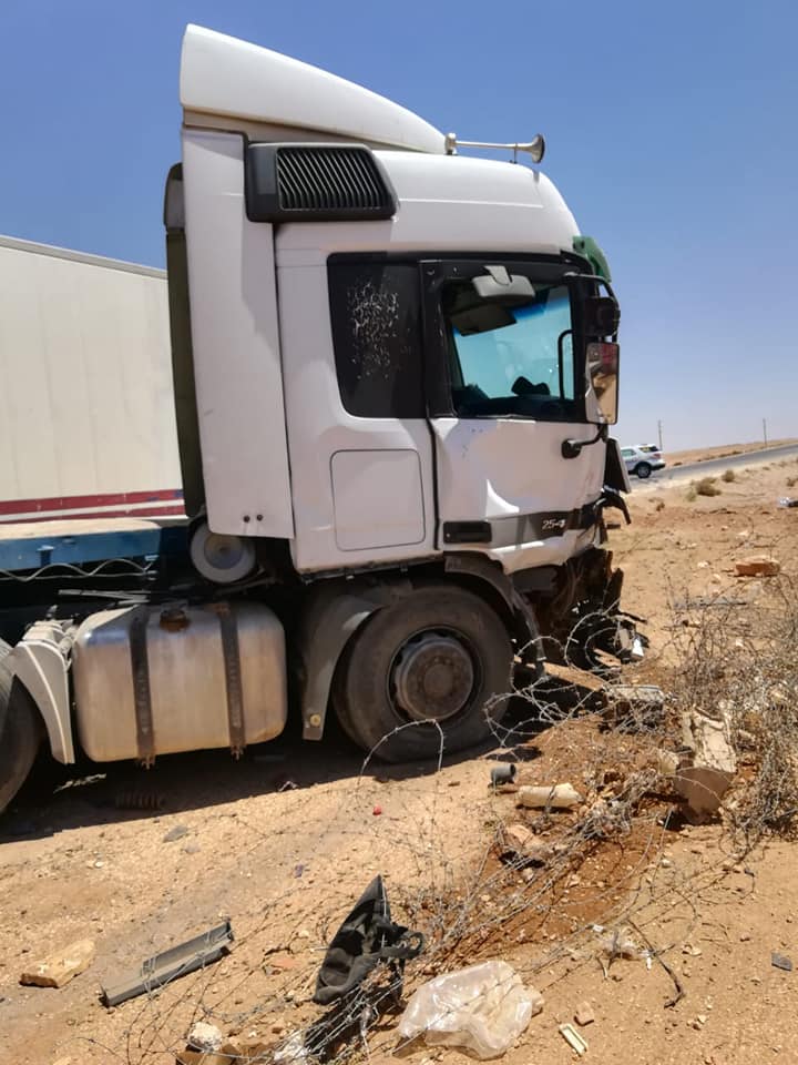 أحداث اليوم - أصيب شخصان اليوم بجروح ورضوض في مختلف أنحاء الجسم إثر حادث تدهور بين تريلات مابعد محطة الكرامة بحوالي 20 كم باتجاه الحدود.