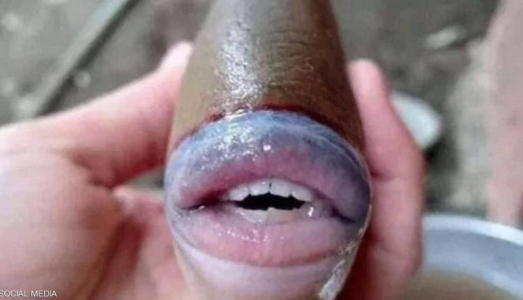 وانتشرت الصورة بعد نشر أحد المغردين عبر تويتر صورة للسمكة ذات الفم البشري، لها أسنان ولثة وشفاه تجعلها قريبة جدا من الإنسان.