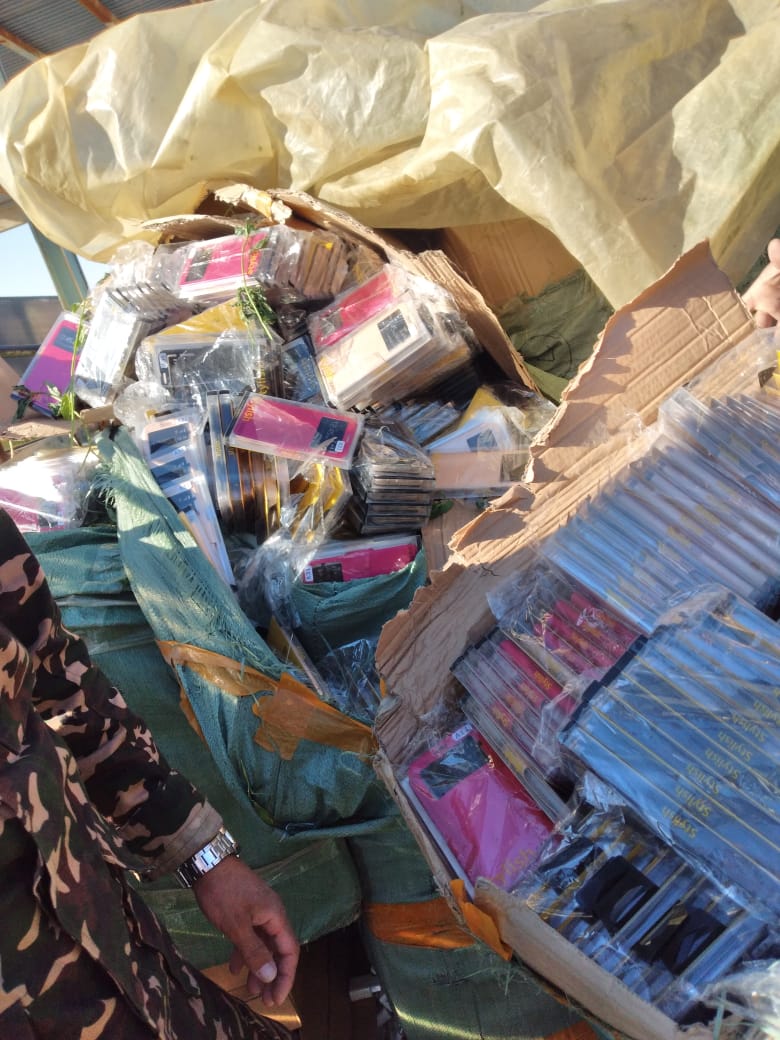 احباط تهريب اكسسورات خلويات بواسطة سيارة محملة بالملوخية - صور