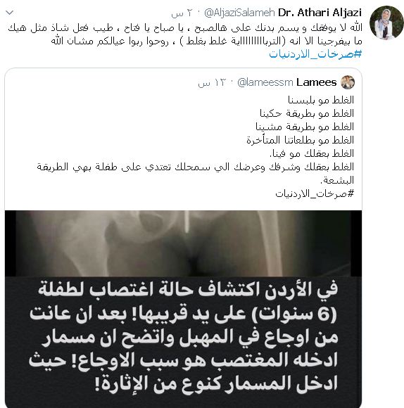 فرح غيث - تصدر وسم #صرخات_ الأردنيات موقع التواصل الاجتماعي "تويتر" في الأردن في اعقاب قضية مقتل الفتاة أحلام التي اثارت الرأي العام بشكل واسع.