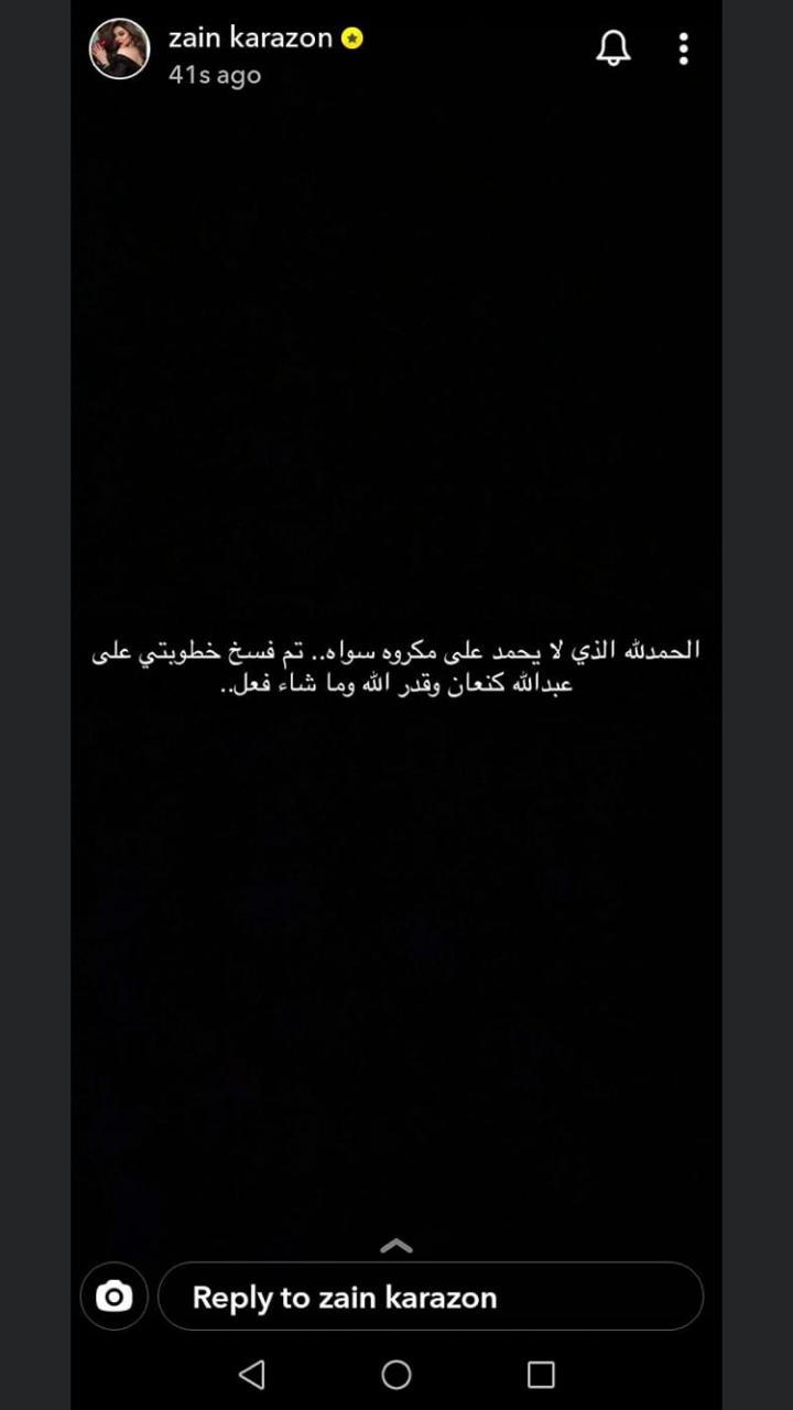 أحداث اليوم - أعلنت الناشطة على مواقع التواصل الاجتماعي زين كرزون فسخ خطوبتها مع على رجل الأعمال عبدالله كنعان: