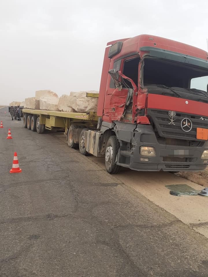 إصابة بحادث تصادم بين 3 تريلات في الرويشد - صور