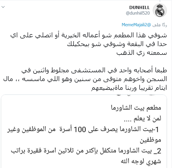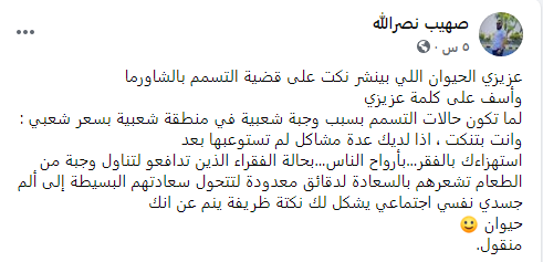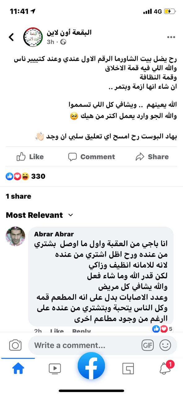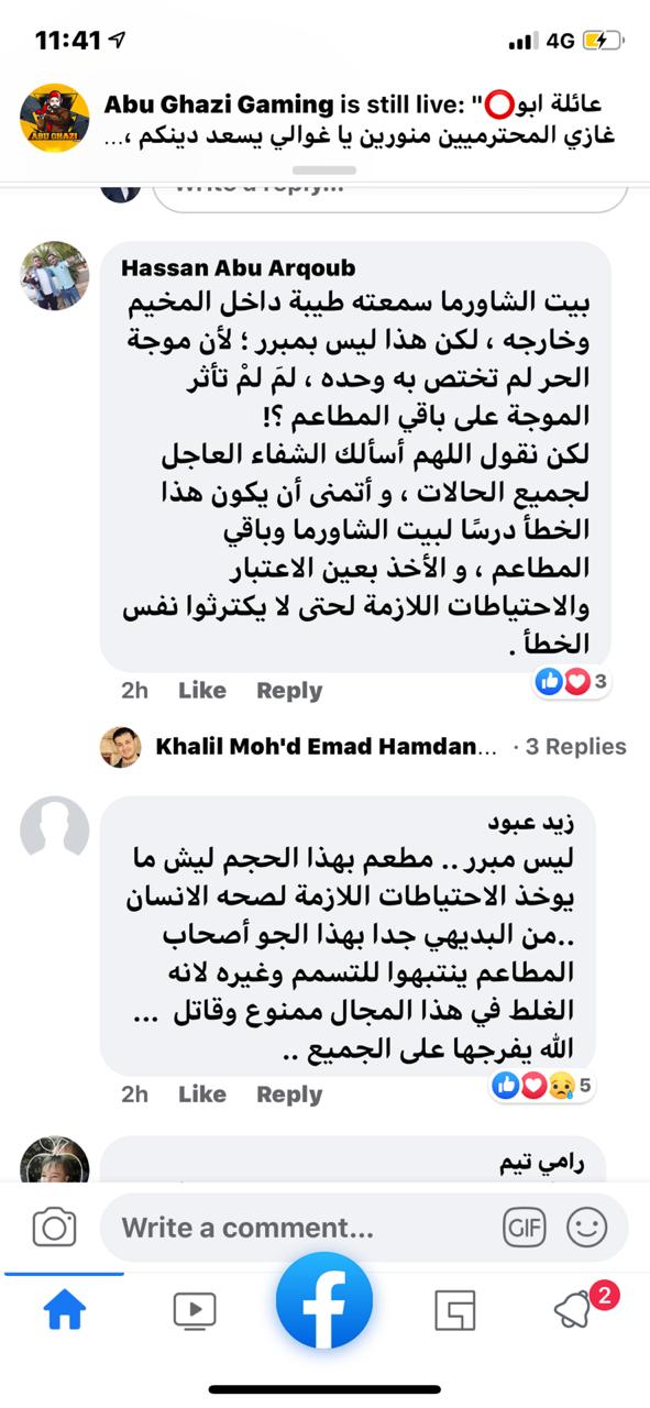 فيما ذهب آخرون للمدافعة عن المطعم وتأكيدهم على نظافة والتزام المطعم بشروط الصحة والسلامة العامة.
