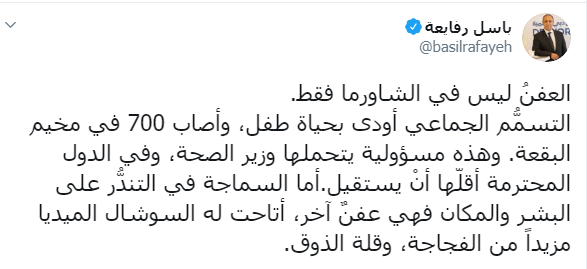 تفاعل نشطاء مواقع التواصل الإجتماعي على حادثة التسمم الجماعي التي وقعت في مخيم البقة وتسبب بتسمم 700 شخص ووفاة طفل.