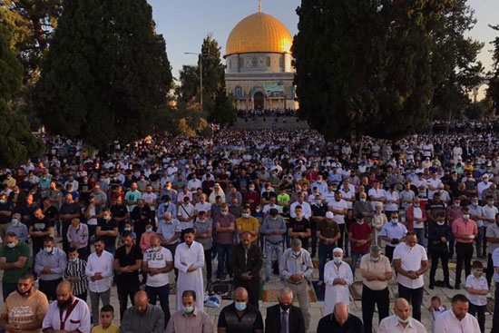 ورغم تواصل تفشي وباء كورونا في القدس والعديد من المناطق في فلسطين المحتلة عام 1948، وإجراءات ومنغصات قوات الاحتلال الإسرائيلي، توافد منذ فجر الجمعة الآلاف من المصلين إلى المسجد الأقصى لأداء صلاة عيد الأضحى.